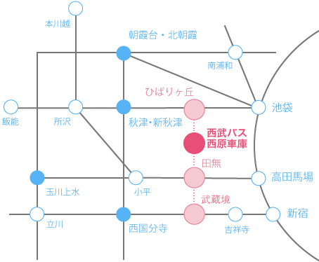 - (田44) 南沢五丁目経由 田無駅行き 約15分 「西武バス西原車庫」