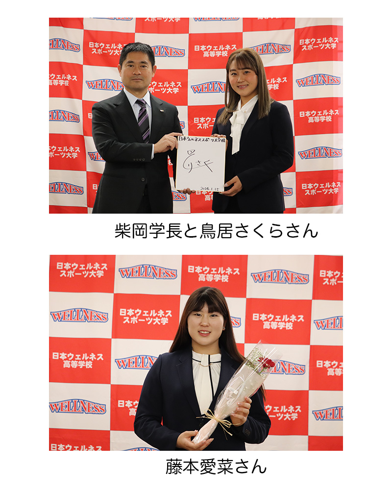 テスト終了後、鳥居さくらさん、藤本愛菜さん、鳥居さくらさんが来校し、2026シーズンに向けての抱負を述べ、柴岡学長や河野G.Mから祝辞をいただきました。応援を宜しくお願いします。