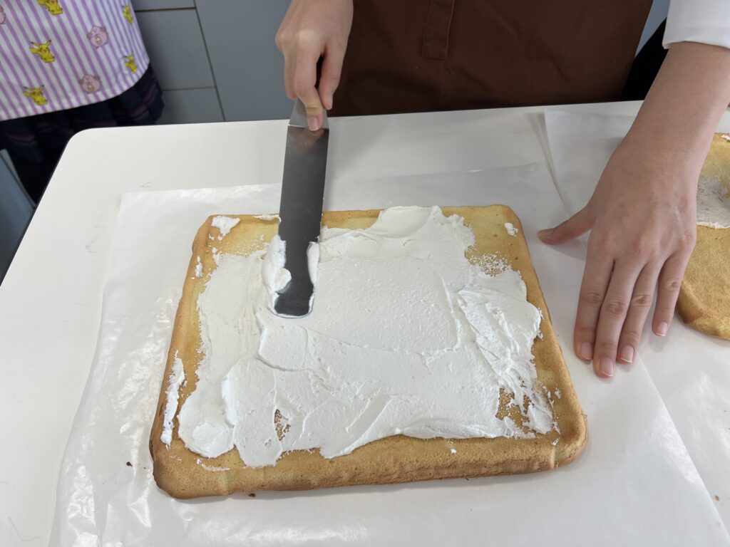 また東京栄養食糧専門学校/東京調理製菓専門学校でご指導されている山本先生、金子先生をお招きしました。材料に使われている素材の知識からロールケーキを作る際のポイントも一つ一つ丁寧に教えてくれました。素材のことも学びながら、楽しく、美味しく作ることができました!