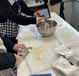 クッキーやパウンドケーキ、カップケーキなどのお菓子作りや夕食の一品となるおかず作りなどを調味の技術を上げるために熱心に活動しています。