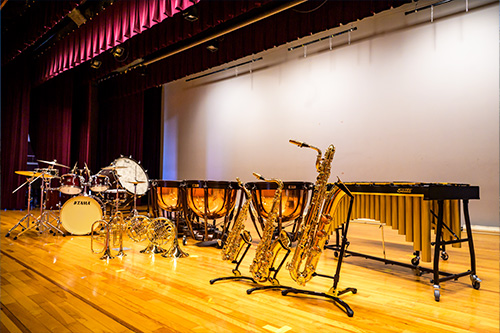 1000人収容の大講堂のステージを文華祭や自主公演で演奏します。