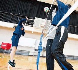 バレーボール部は、週4~5回体育館で活動しています。活動日の大半が体育館で練習できるという恵まれた環境のなかで、平日は基礎練習を中心に行い、長期休暇中には他校と練習試合なども行っています。