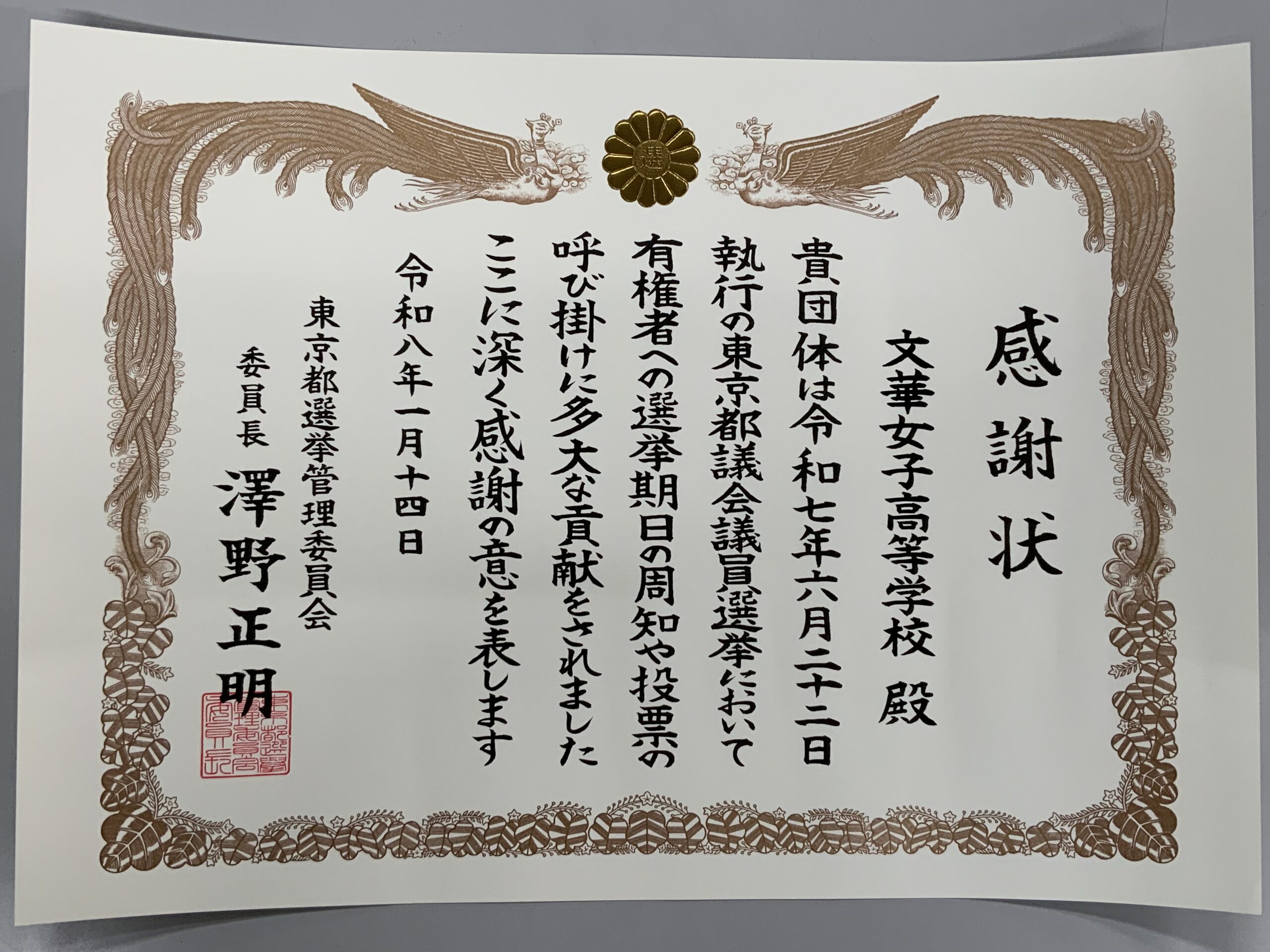 2026.01.16東京都選挙管理委員会から表彰されましたお知らせ -