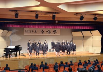 1年 合唱祭2026.02.19.Thuお知らせ1年生は、合唱祭を行いました。音楽選択者、クラス別、学年全体で、それぞれ異なる曲を披露しました。授業以外の時間も協力し合い、みんなで沢山練習をしました。アカペラや3部合唱に挑戦したクラスもあり、かなり難易度が高く練習の成果が表れ、講堂いっぱいに歌声が響きわたりました。
